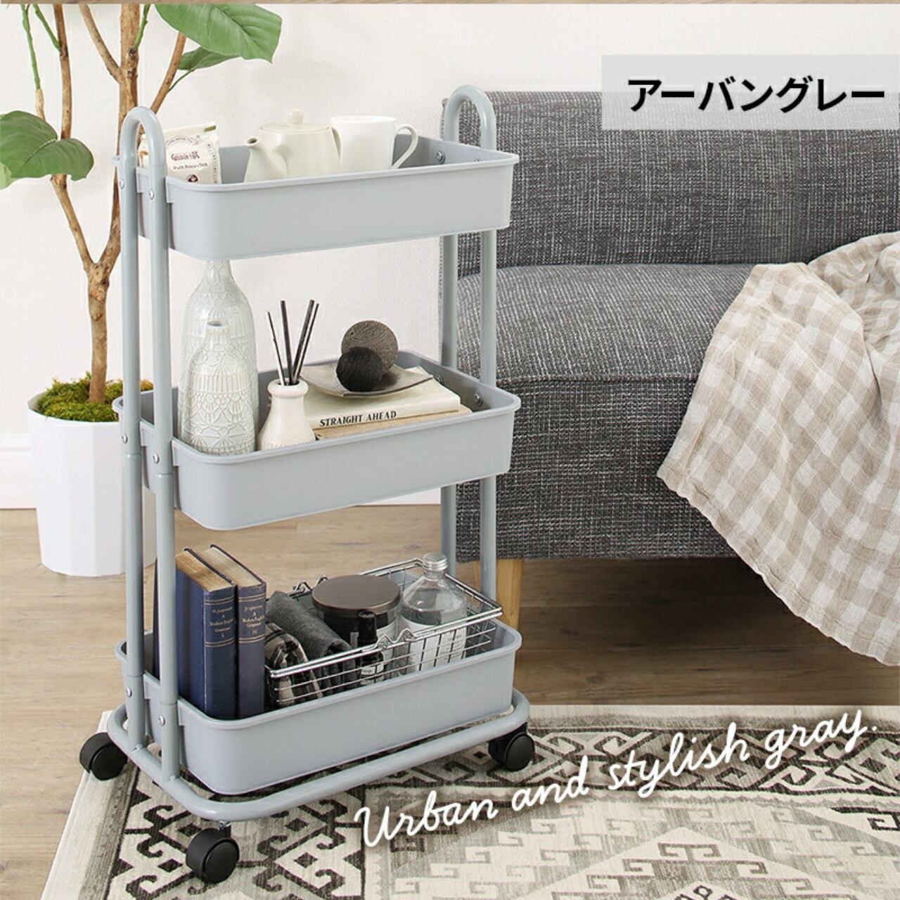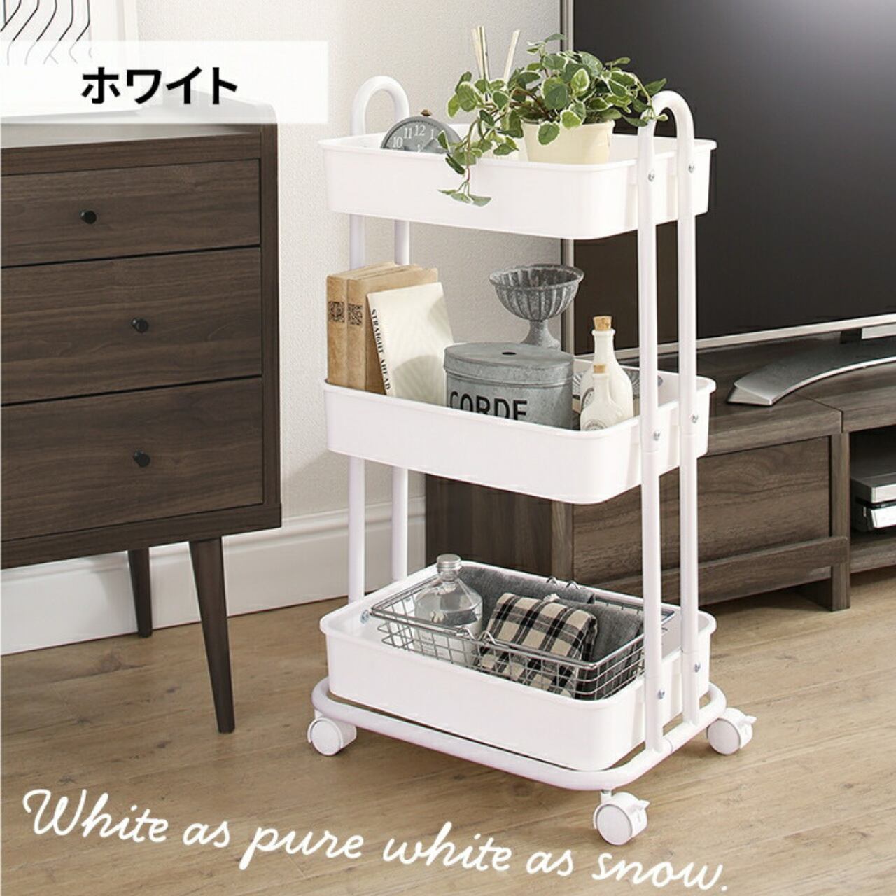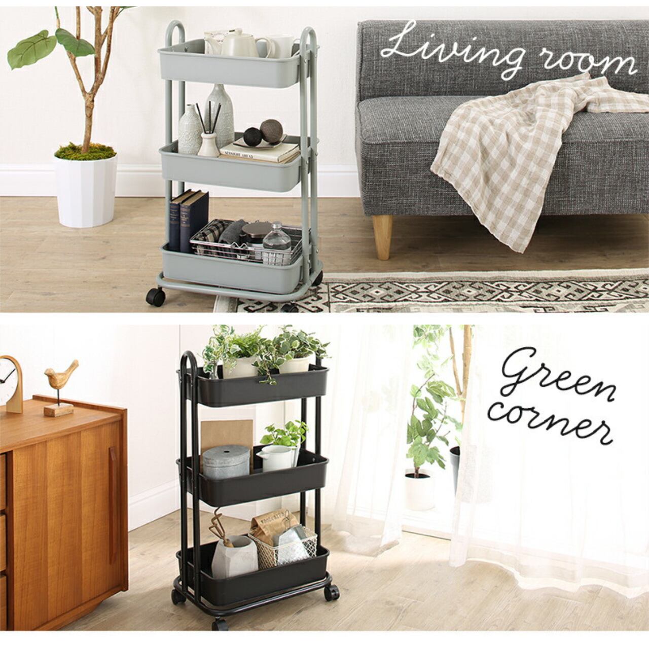 バスケットトローリー収納ワゴン 暮らしトーン