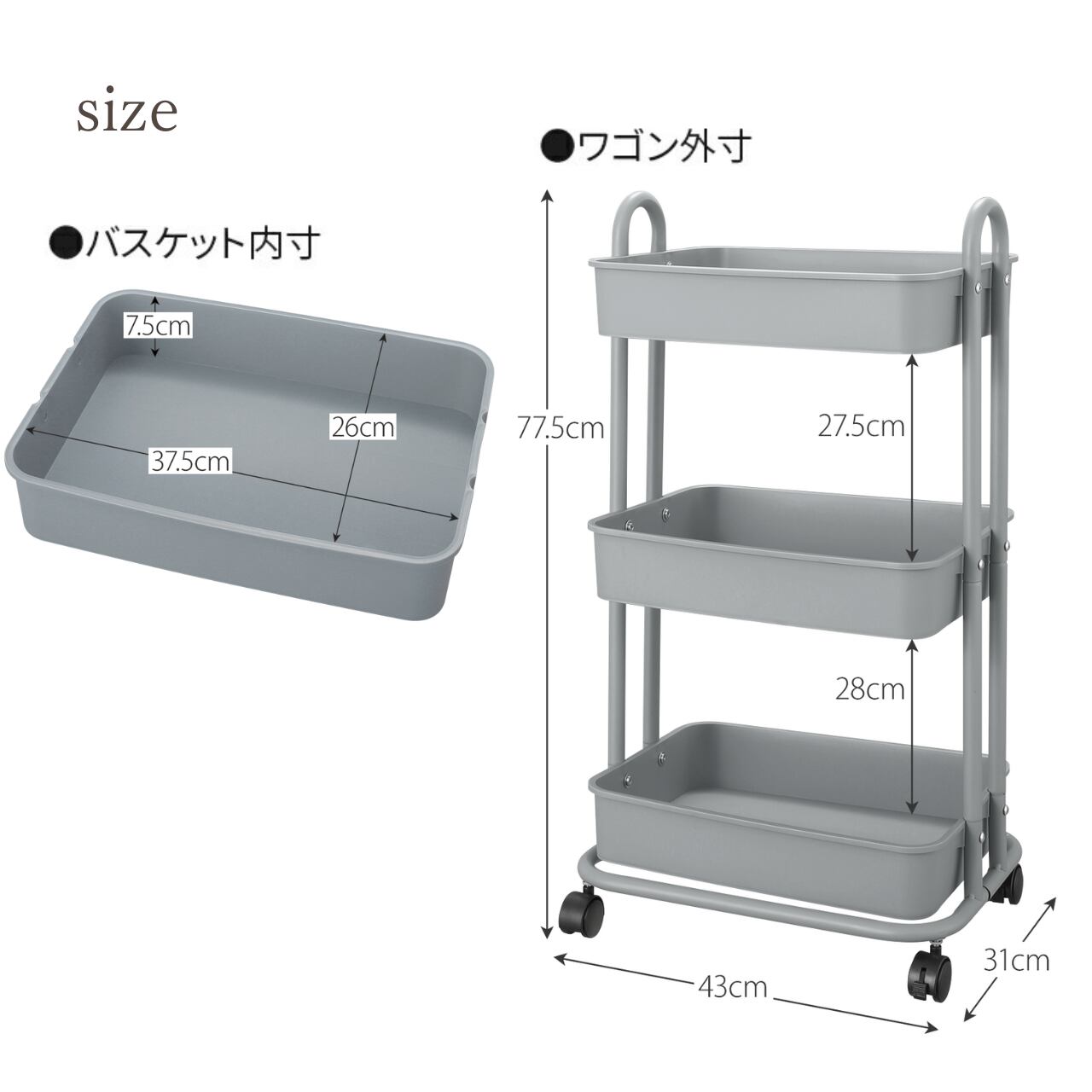 ・バスケット内寸:(約)幅37.5×奥行26×高さ7.5cm
